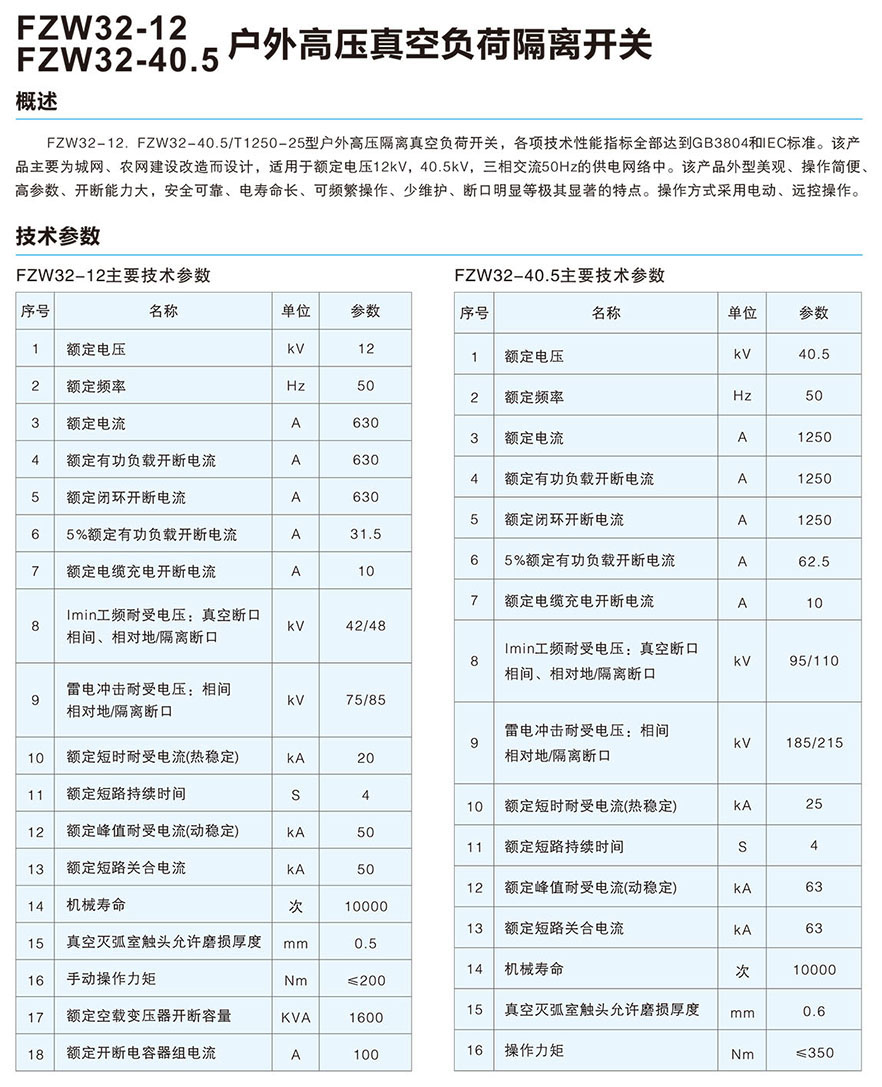 FZW32-12/FZW32-40.5户外高压真空负荷隔离开关