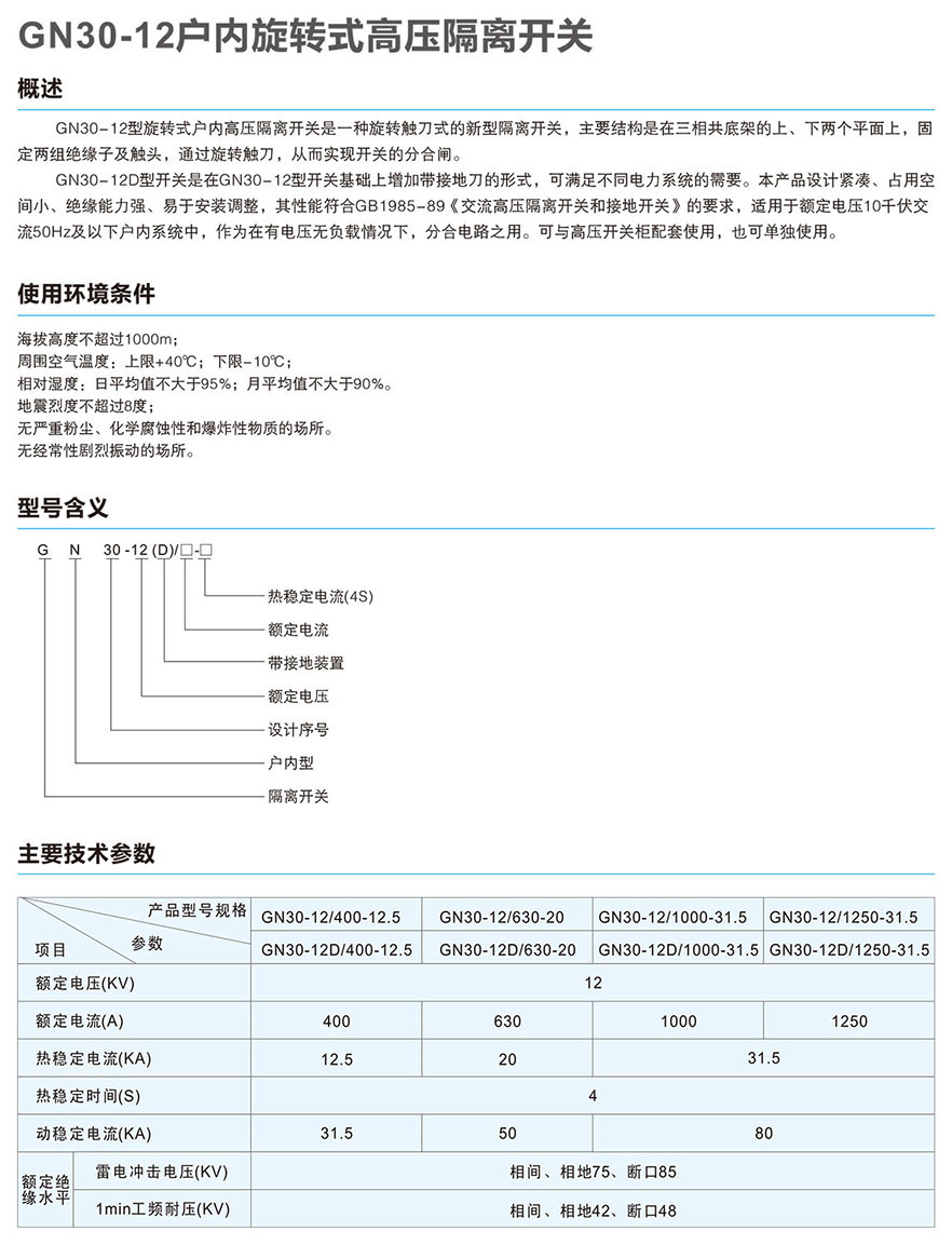 GN30-12户内旋转式高压隔离开关