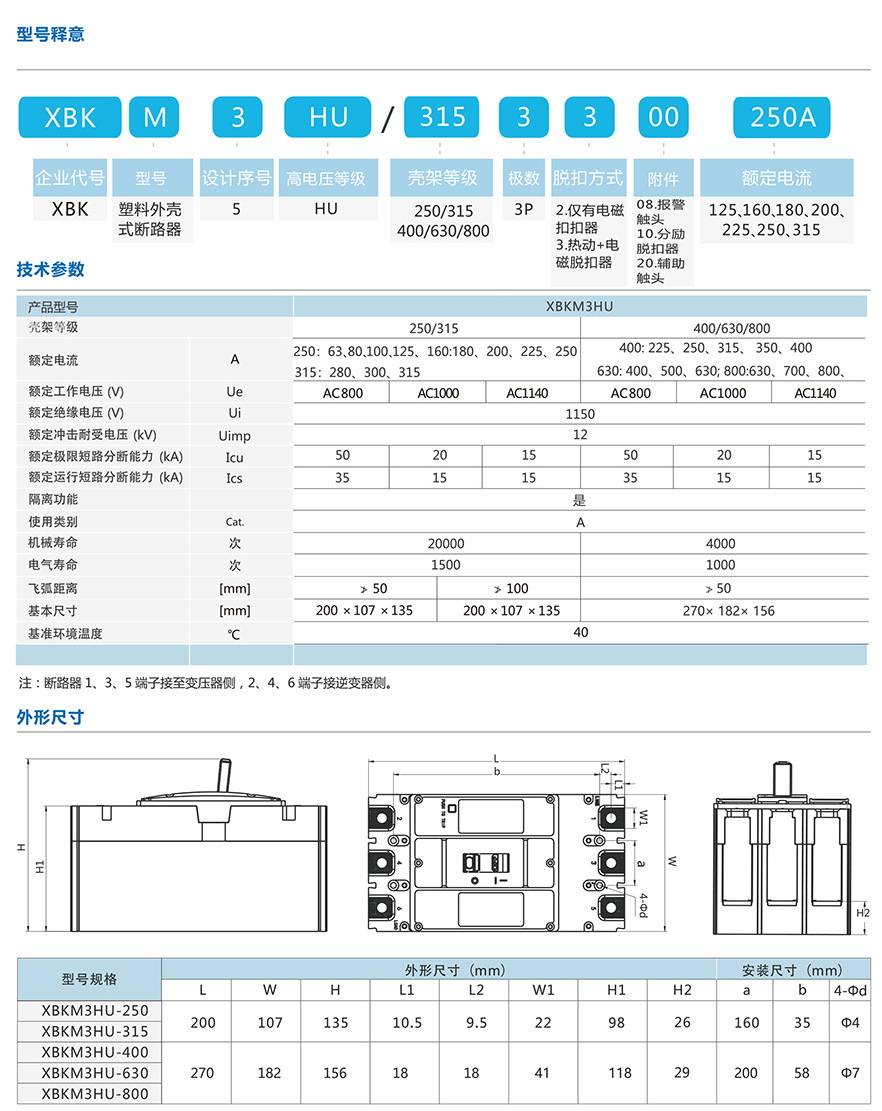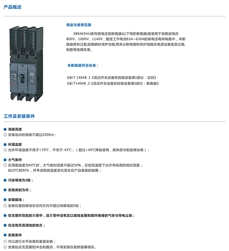 XBKM3HU系列高电压等级塑料外壳式断路器