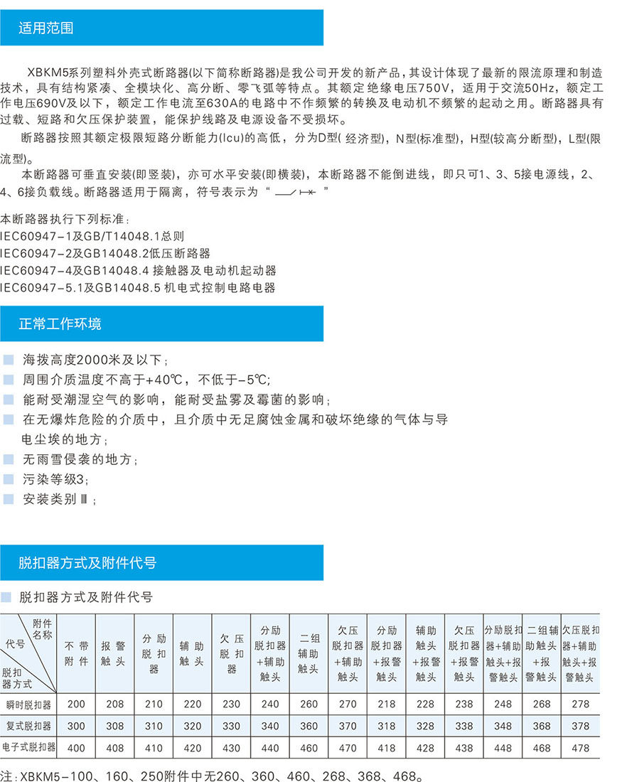 XBKM5塑料外壳式断路器