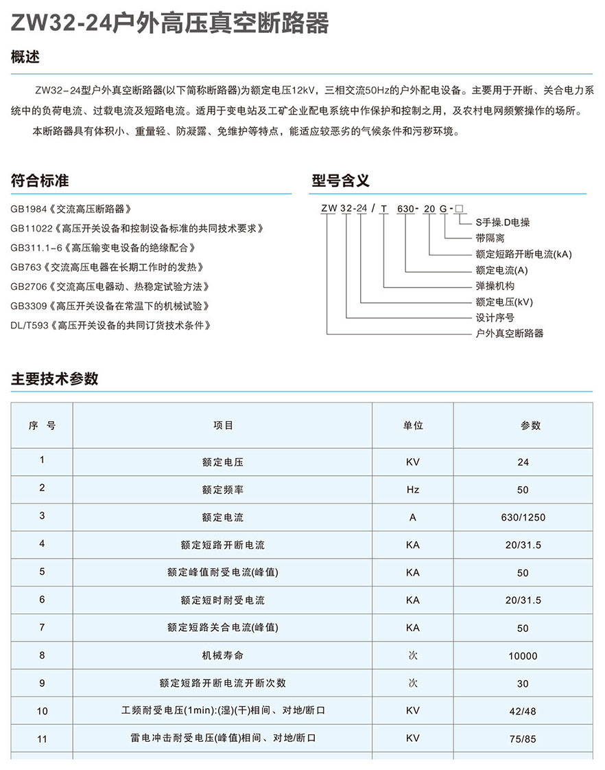 XBKW3(ZW32)-24户外高压真空断路器