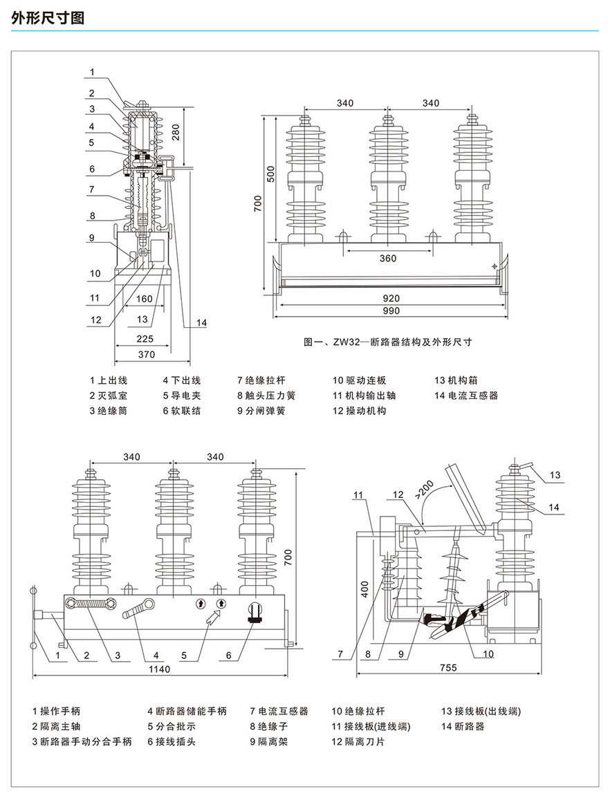 XBKW0(ZW20-12)户外高压真空断路器