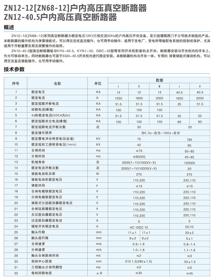 ZN12-12(ZN68-12)(ZN12-40.5)户内高压真空断路器