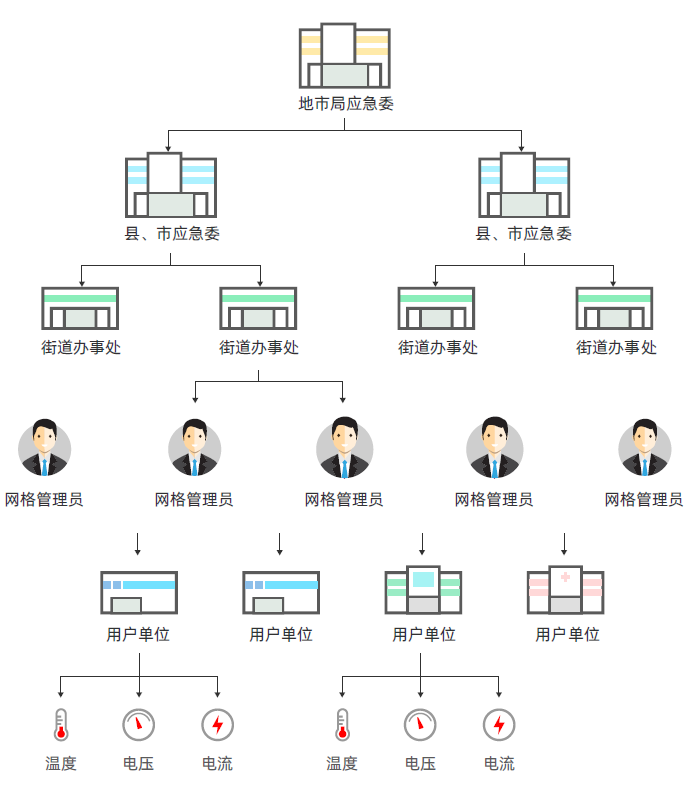 1、平台通过FLEX(Flexible)授权机制可连接多个用户(个体、企业、单位)并快速组建管理网络,支持分级和区域管理,满足国内安全生产分级监管模式。 2、个体或小型用户也可快速部署和监控辖内设备运行状态。